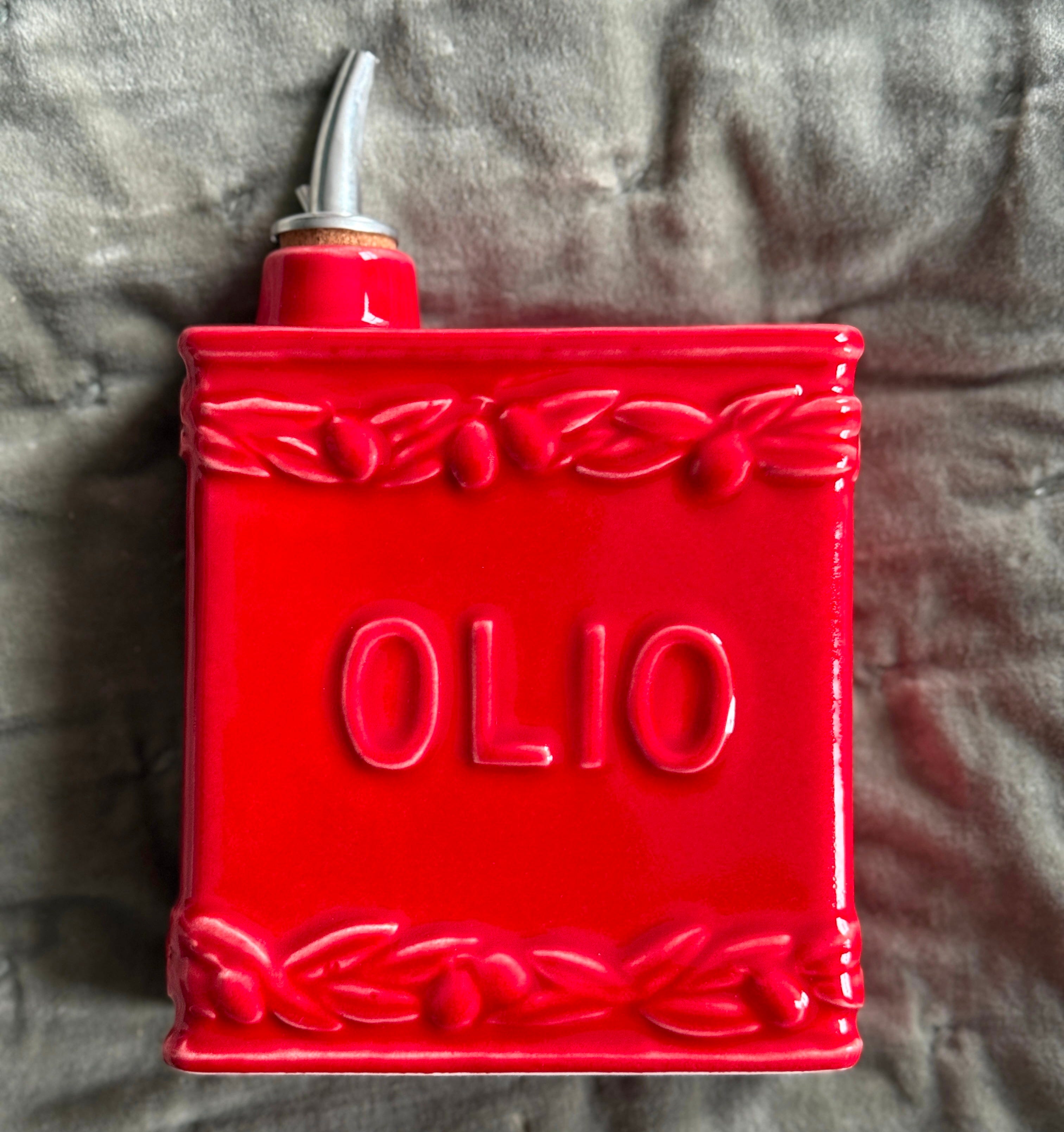 An oil pourer which is a little predictable, but I loved the shape of this and also the fact that it was red. It’ll go perfectly next to the range in the new kitchen and contrast well with the blue tiles. No Asda own brand bottles on display in my no kitchen, no siree. I’ll decant it into that. Perfect.