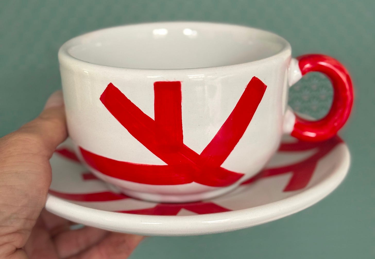 We went to the MOST fabulous place for drinks called La Minervetta (thank you Mark and Keith from Mini Moderns for the suggestion) which had interiors to die for and which also had a shop next door. I bought two mugs with saucers for my new kitchen shelves, plus three plates that I’ll hang on the wall. They’re actually super heavy and I am so pleased with them. A good memory.